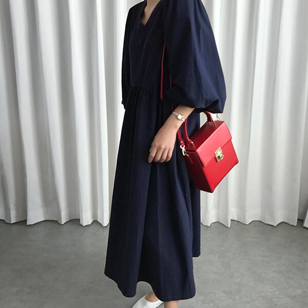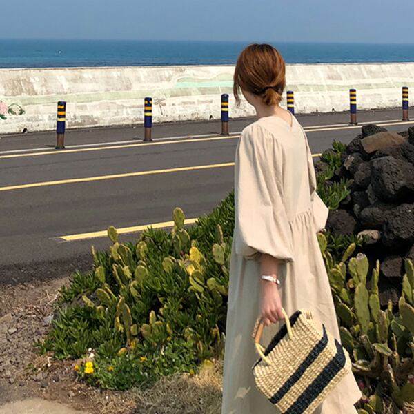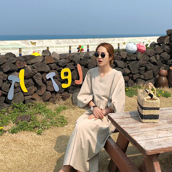 マタニティ マタニティワンピース レトロ調ワンピース Vネック ロング丈ワンピース